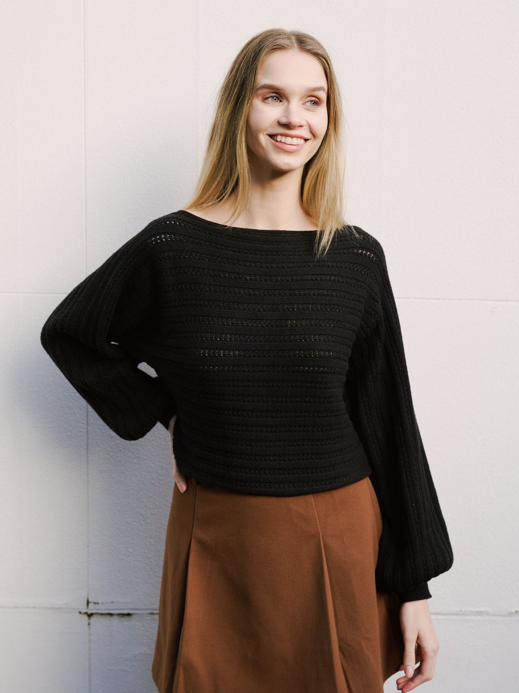 A new take on one of our best-selling knits, our Bees Knees 2 is a versatile piece and will be an all-year-round favourite. Perfect for throwing on and heading out the door, it’ll keep you stylish no matter the occasion. The renewed Bees Knees knit is designed in a longer length allowing more coverage in the mid-drift area, a boat neckline and cuffed billowy sleeves adding a little something extra to the popular top. Simply add denim bottoms and sneakers for a modern on trend look or layer it over a cute summer dress.